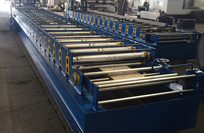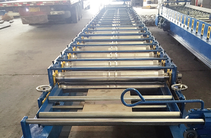 1、成形主机:机架为396H钢焊接而成,墙板式结构,链轮链条传动,19道滚压成型(1-8为通轴),电机功率18.5KW,成型速度20米/分,外形尺寸:9.6米×1.4米×0.9米,整机重量为:5.8吨。